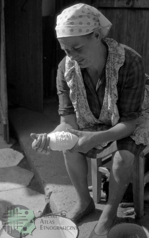Góralka wyrabiająca oscypki (cz. 3) / Kolekcja fotografii Zygmunta Kłodnickiego - Waksmund (woj. małopolskie)