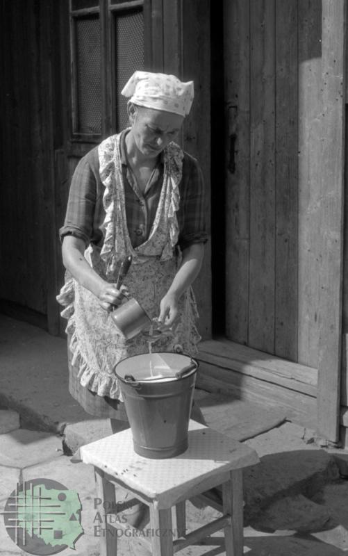 Góralka wyrabiająca oscypki (cz. 4) / Kolekcja fotografii Zygmunta Kłodnickiego - Waksmund (woj. małopolskie)