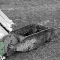 Taczki skrzynkowe leżące na trawie / Kolekcja fotografii Zygmunta Kłodnickiego - Murzasichle (woj. małopolskie)