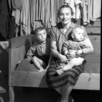 Kobieta z dwójką dzieci we wnętrzu domu / Kolekcja fotografii Zygmunta Kłodnickiego - Murzasichle (woj. małopolskie)