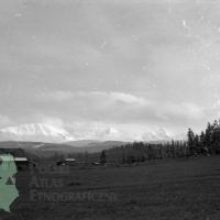 fotografia przedstawia widok ze skraju Budzowego Wierchu z budynkami mieszkalnymi