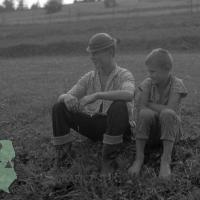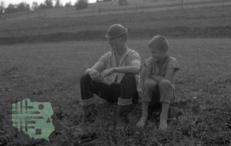 Ojciec i syn odpoczywający na łące / Kolekcja fotografii Zygmunta Kłodnickiego - Brzegi (woj. małopolskie)