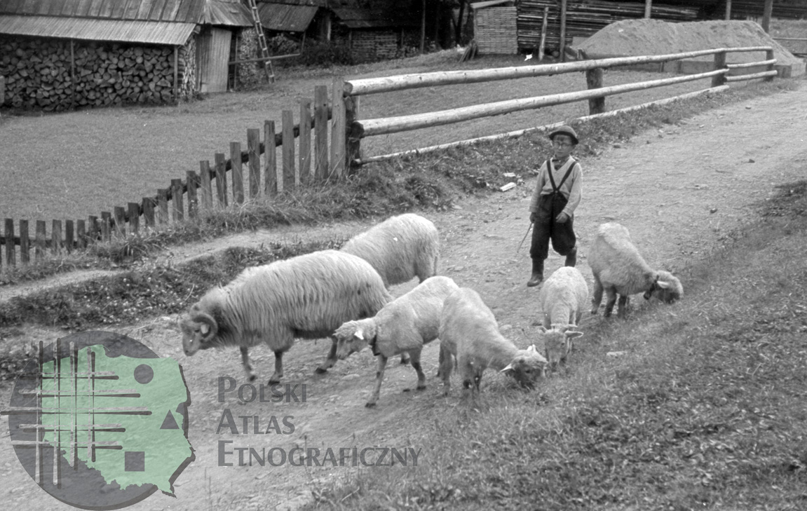 Chłopiec pędzący owce na pastwisko / Kolekcja fotografii Zygmunta Kłodnickiego - Brzegi (woj. małopolskie)