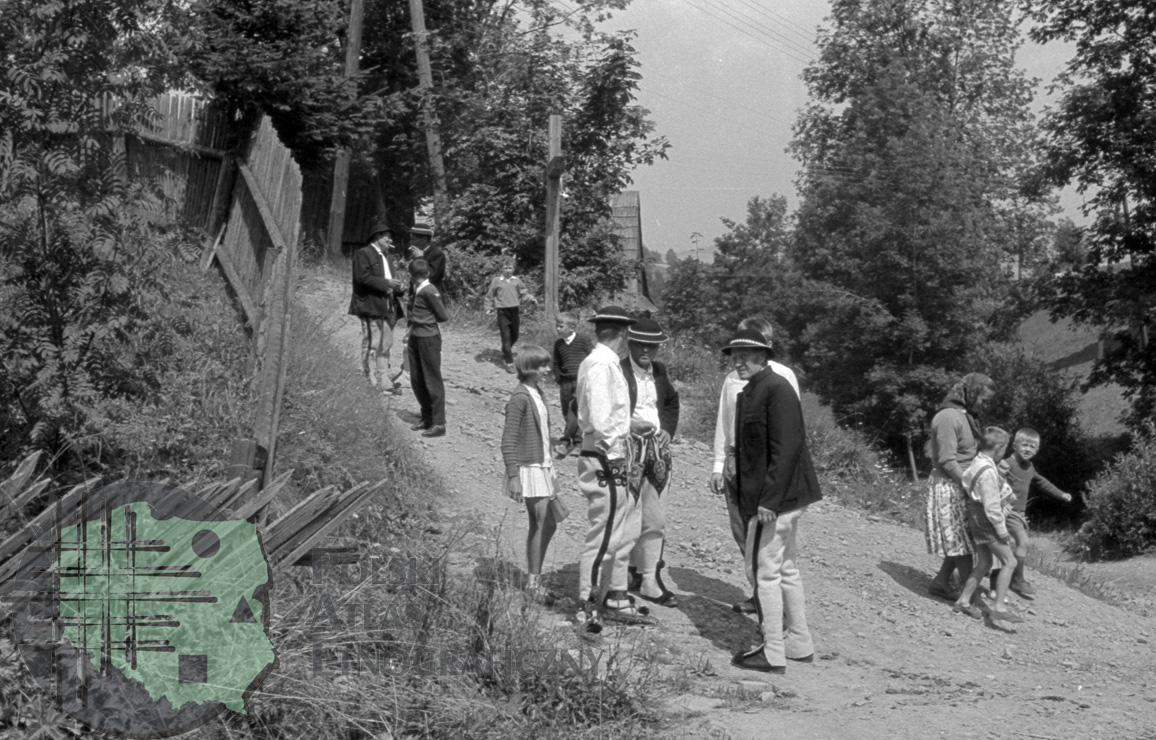 Górale w strojach podhalańskich w drodze do kościoła / Kolekcja fotografii Zygmunta Kłodnickiego - Brzegi (woj. małopolskie)