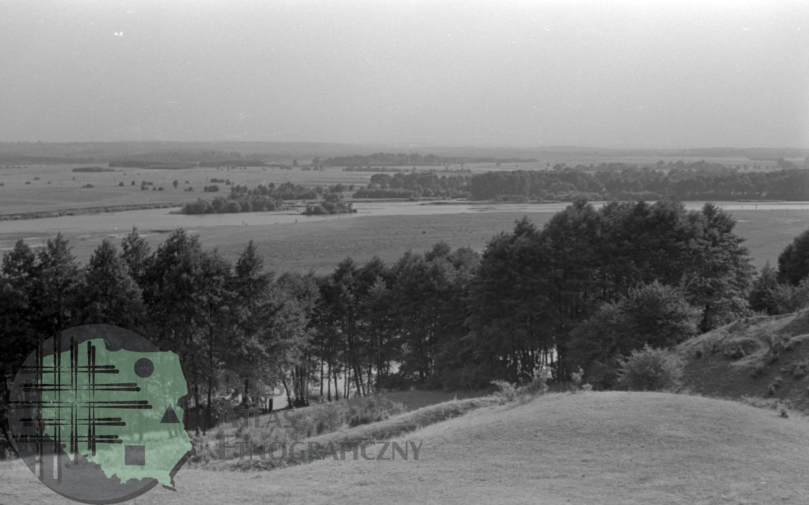 fotografia przedstawia widok z miejscowości Góra na rzekę Pilicę. Uwaga:- miejscowość Góra to obecnie dzielnica Nowego Miasta