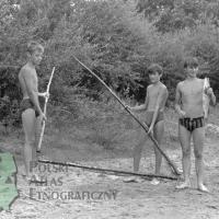 Trzej chłopcy prezentujący włok do połowu ryb / Kolekcja fotografii Zygmunta Kłodnickiego - Górki (woj. mazowieckie)