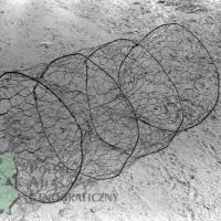 fotografie przedstawiają fotografia wierszę - samołówkę rybacką z dwoma sercami typu bębenek wykonaną z siatki drucianej (1), więcierz dwuskrzydłowy (2),usztywnioną kłonię pałąkowatą (3)