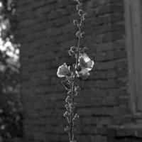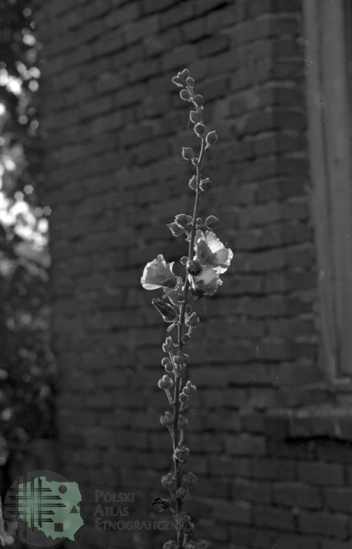 Kwitnąca malwa na tle ściany budynku z cegły / Kolekcja fotografii Zygmunta Kłodnickiego - Kręgi Stare (woj. mazowieckie)