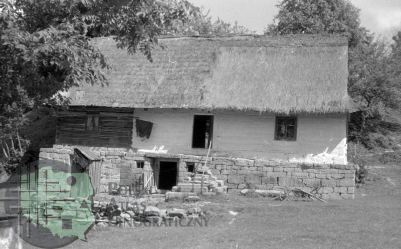 fotografia przedstawia podpiwniczony budynek mieszkalno-gospodarczy, dawną łemkowską chyżę