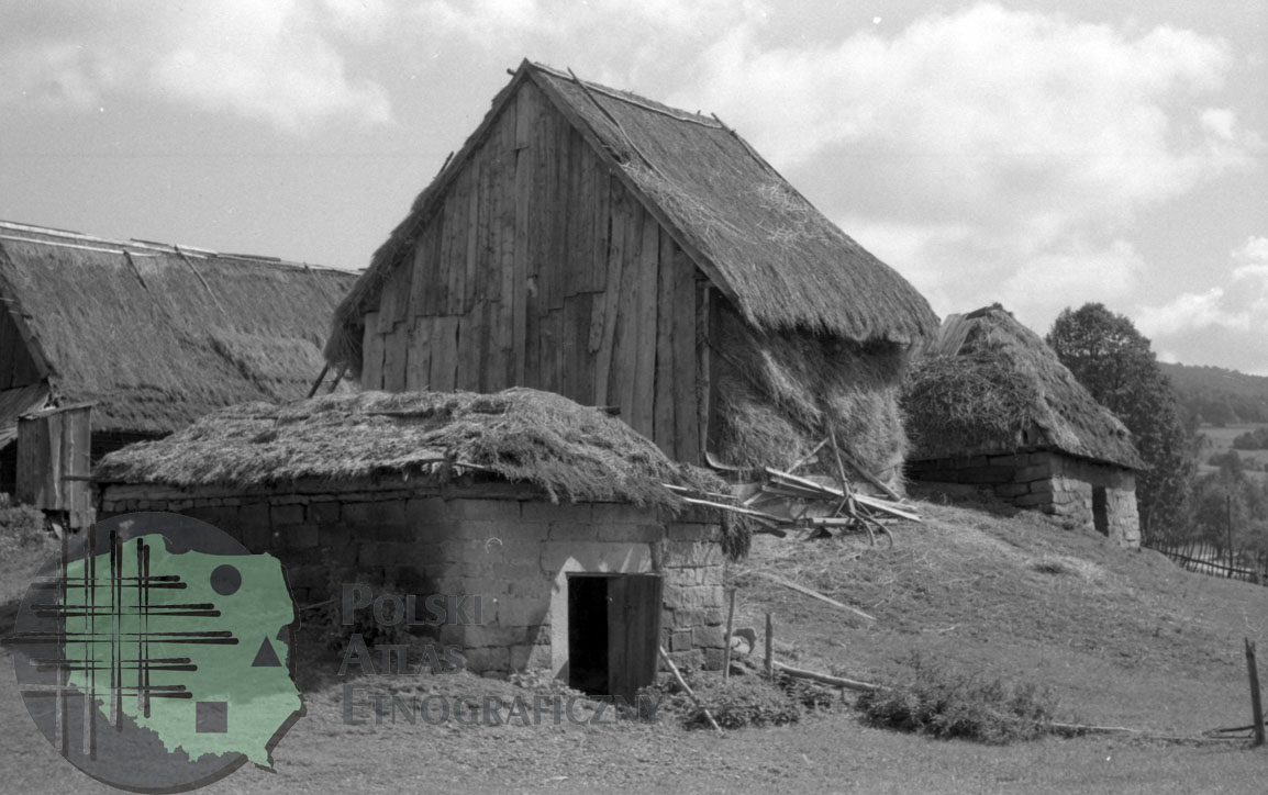 Fragment zagrody z drewnianymi zabudowaniami / Kolekcja fotografii Zygmunta Kłodnickiego - Bartne (woj. małopolskie)