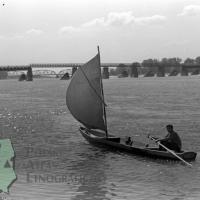 Łódź rybacka z żaglem płynąca po Wiśle / Kolekcja fotografii Zygmunta Kłodnickiego - Gołąb (woj. lubelskie)