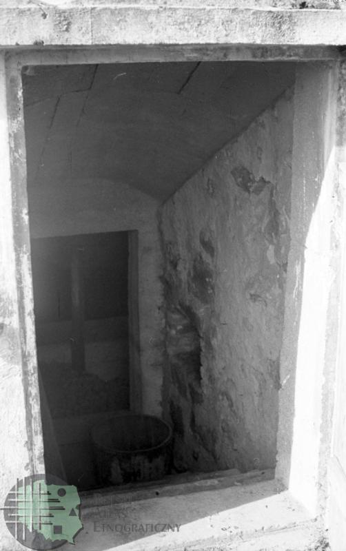 fotografia przedstawia wnętrze piwnicy ziemiankowej przykrytej dachem