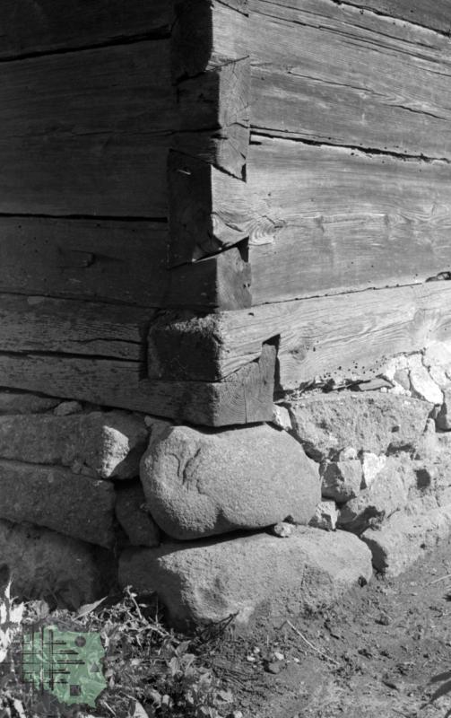 Fragment ściany domu o konstrukcji węgłowej / Kolekcja fotografii Zygmunta Kłodnickiego - Wyrzyki / Nowe Wyrzyki (woj. podlaskie) - ściana węgłowa