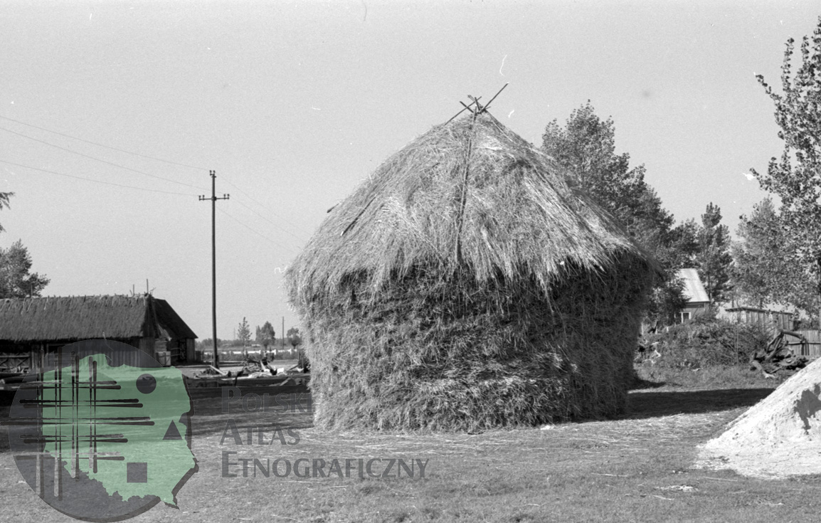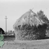 Stóg siana na tle zabudowań wiejskich/ Kolekcja fotografii Zygmunta Kłodnickiego - Świerże (woj. mazowieckie)