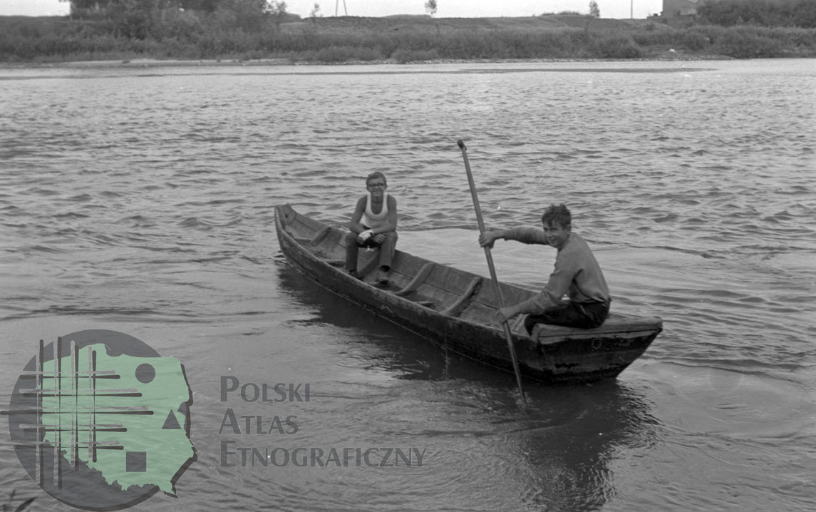 Chłopcy przeprawiający się łodzią przez rzekę San / Kolekcja fotografii Zygmunta Kłodnickiego - Rędziny (woj. podkarpackie)