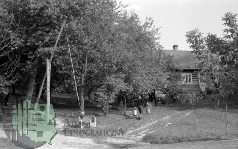Transport wody przy pomocy nosideł drążkowatych/ Kolekcja fotografii Zygmunta Kłodnickiego - Futoma (woj. podkarpackie)