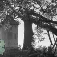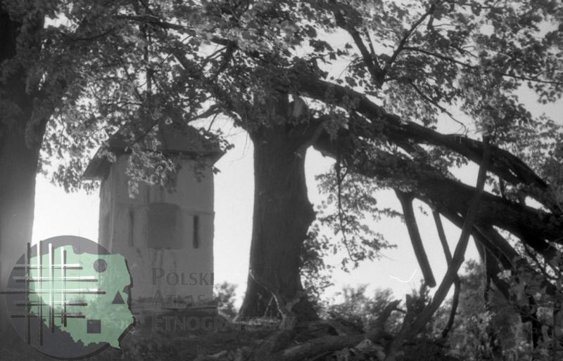 Kapliczka domkowa ukryta w gałęziach drzew / Kolekcja fotografii Zygmunta Kłodnickiego - okolice [między Polańczykiem a Wołkowyją] - (woj. podkarpackie)