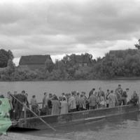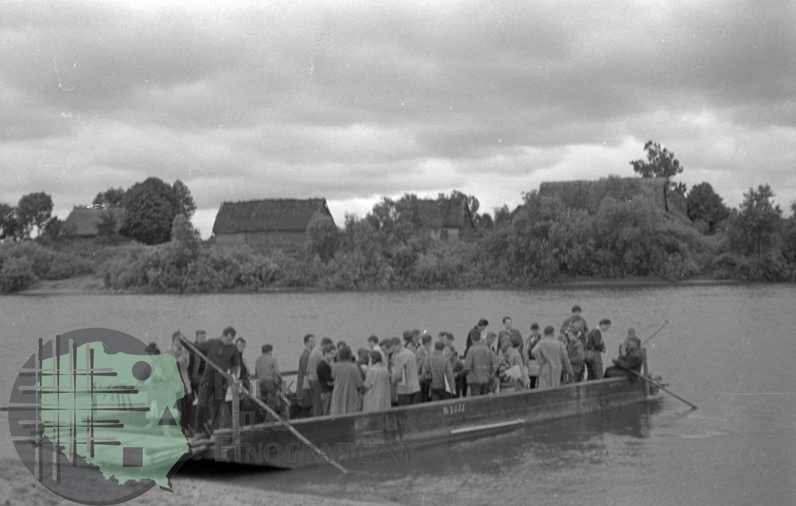 fotografia przedstawia prom na rzece Bug (pomiędzy Drohiczynem a Bużyskami). Uwaga:- fotografia powstała w trakcie badań etnologicznych po 1 roku studiów Z. Kłodnickiego (praktyka terenowa)