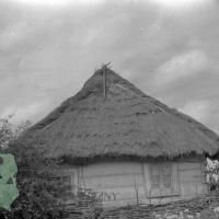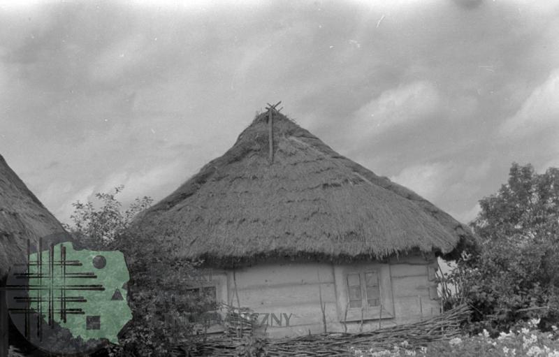 fotografia przedstawia budynek mieszkalny Uwaga: - fotografia powstała w trakcie badań etnologicznych po 1 roku studiów Z. Kłodnickiego (Międzyuczelniany Obóz Etnograficzny organizowany przez etnologię warszawską pod kierunkiem Anny Kutrzeby-Pojnarowej)