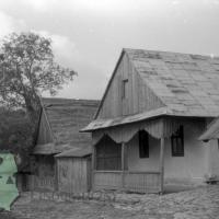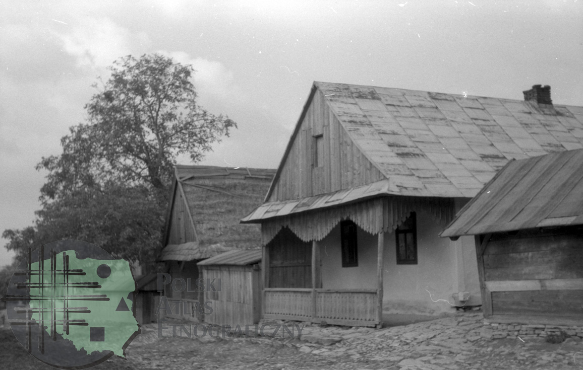 Zabudowania wiejskie i drewniany dom z galerią / Kolekcja fotografii Zygmunta Kłodnickiego - Kalwaria Pacławska (woj. podkarpackie)