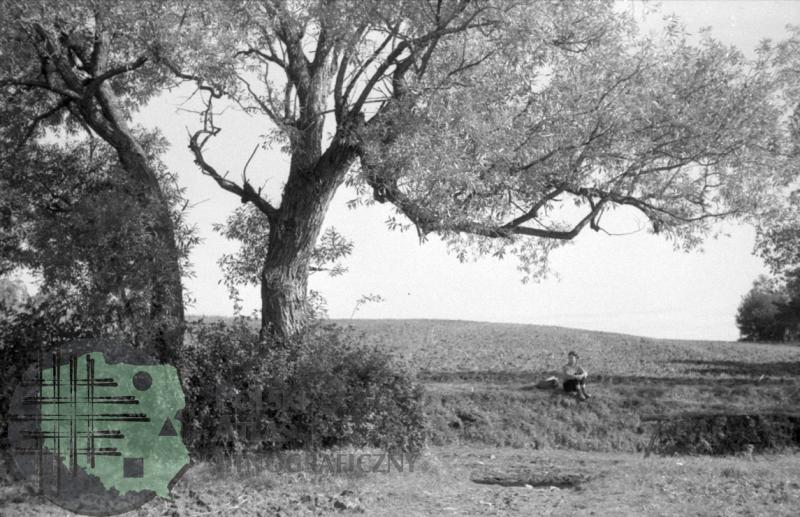 Kobieta siedząca pod drzewem / Kolekcja fotografii Zygmunta Kłodnickiego - Kalwaria Pacławska (woj. podkarpackie)