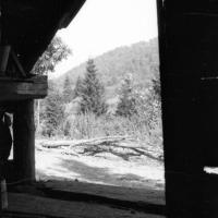 Widok z wnętrza szałasu pasterskiego / Kolekcja fotografii Zygmunta Kłodnickiego - Brzegi Górne / Berehy Górne (woj. podkarpackie)