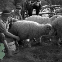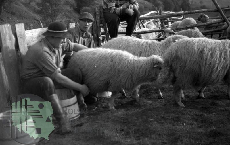 Górale dojący owce / Kolekcja fotografii Zygmunta Kłodnickiego - Brzegi Górne / Berehy Górne (woj. podkarpackie)
