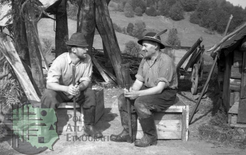 Pasterze siedzący przed szałasem / Kolekcja fotografii Zygmunta Kłodnickiego - Brzegi Górne / Berehy Górne (woj. podkarpackie)