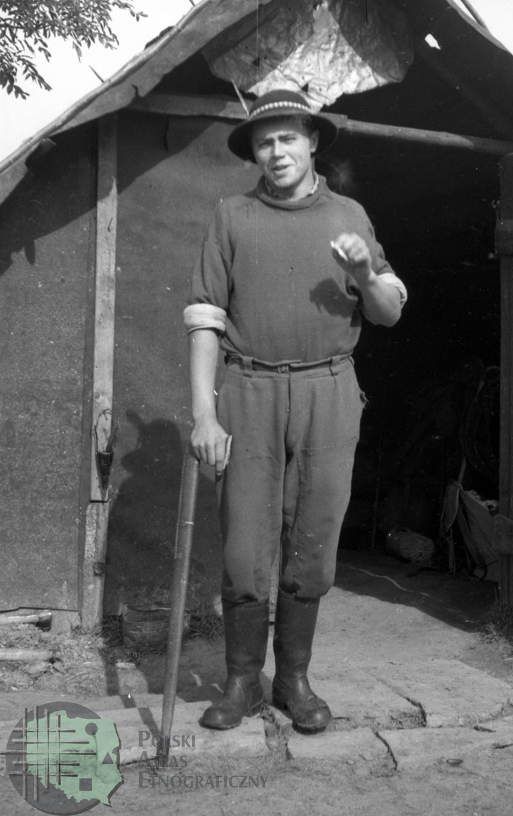 Pasterz stojący przed szałasem / Kolekcja fotografii Zygmunta Kłodnickiego - Brzegi Górne / Berehy Górne (woj. podkarpackie)
