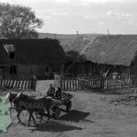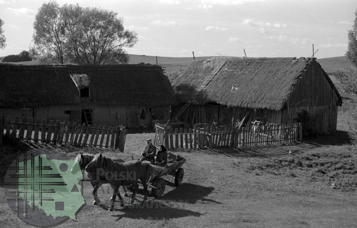 Wyjazd zaprzęgiem konnym z zagrody / Kolekcja fotografii Zygmunta Kłodnickiego - Jegliniec (woj. podlaskie)