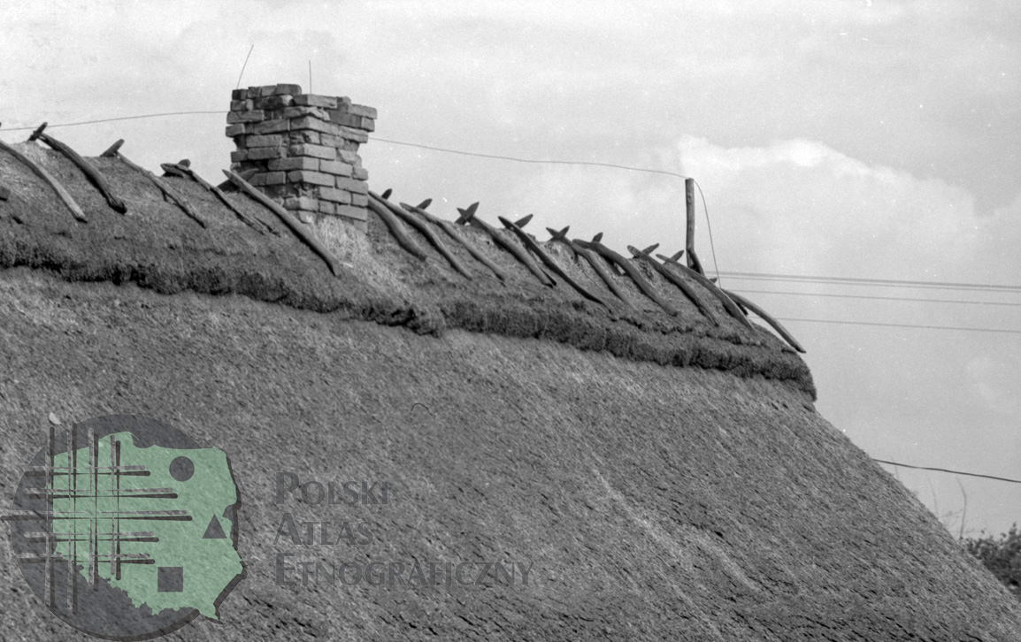 Fragment dachu krytego słomą i kalenica / Kolekcja fotografii Zygmunta Kłodnickiego - Wirkowice (woj. lubelskie)