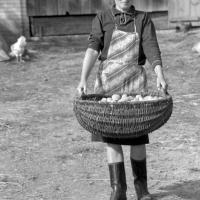 fotografia przedstawia kobietę trzymającą opałkę, w której są ziemniaki. Uwaga:- w odległości 2 km od siebie znajdują się dwie wsie Wirkowice Pierwsze i Wirkowice Drugie, stąd lokalizacja miejscowości Wirkowice na mapie jest przybliżona