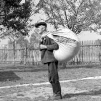 Mężczyzna niosący płachtę na plecach / Kolekcja fotografii Zygmunta Kłodnickiego - Tarzymiechy (woj. lubelskie)
