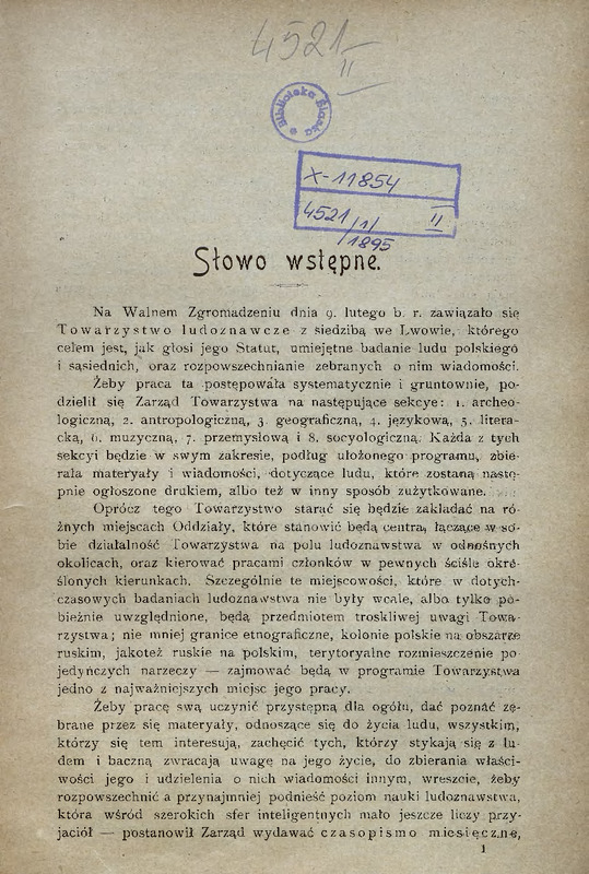 - Słowo wstępne/ Lud, 1895, t. 1