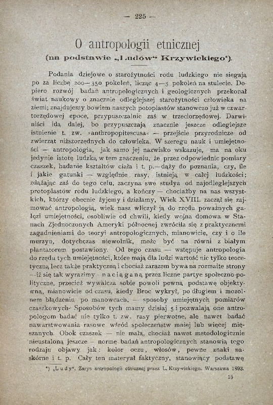 O antropologii etnicznej ( na podstawie "Ludów" Krzywickiego)/ Lud, 1895, t.1