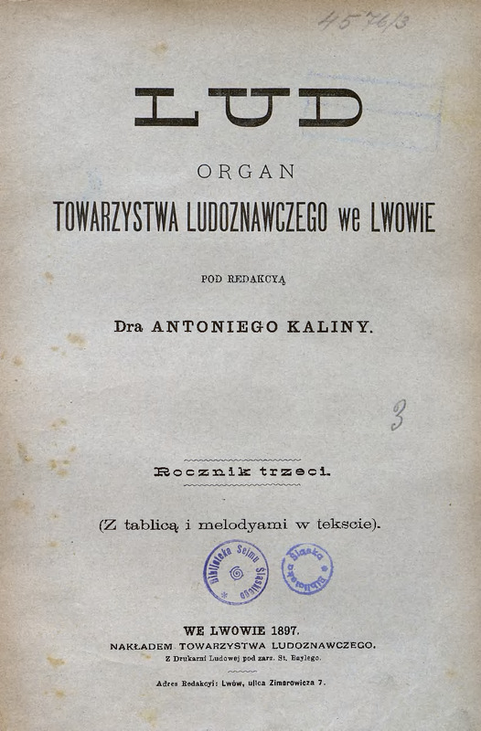 Strony tytułowe / Lud, t. 3, 1897