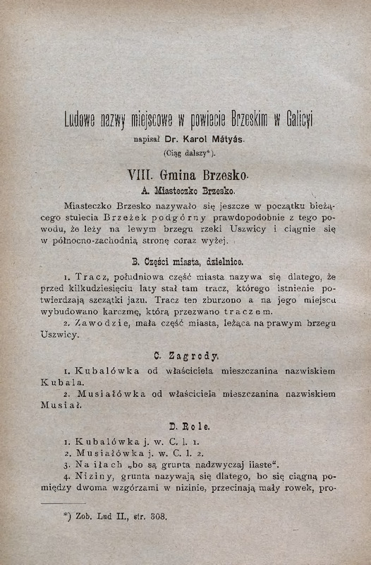 - Ludowe nazwy miejscowe w powiecie Brzeskim w Galicyi / Lud, 1897, t. 3