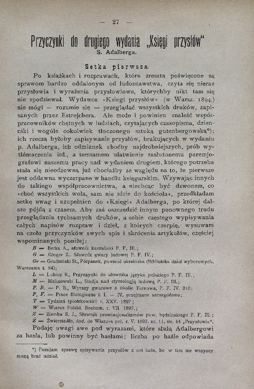 - Przyczynki do drugiego wydania "Księgi przysłów" I/ Lud, 1900, t. 6