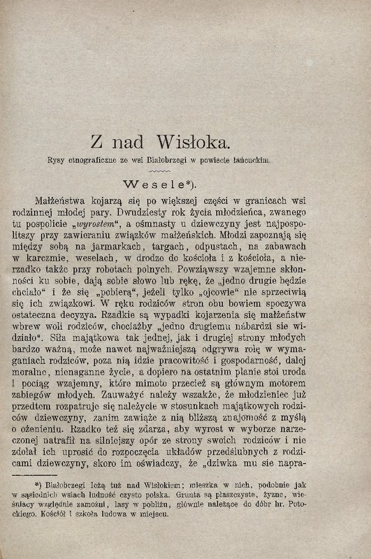 - Z nad Wisłoka. Rysy etnograficzne wsi Białobrzegi w pow. łańcuckim / Lud, 1902, t. 8
