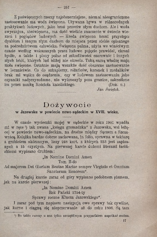 - Dożywocie w Jazowsku w powiecie nowo-sądeckim w XVIII wieku / Lud, 1902, t. 8