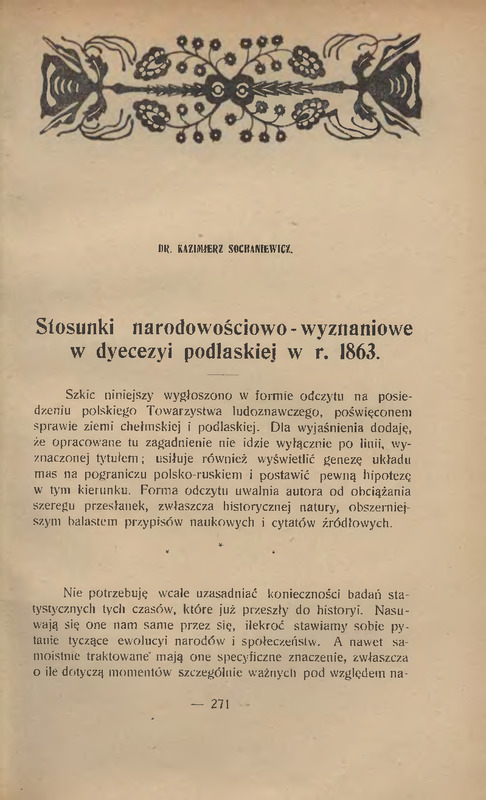 - Stosunki narodościowo-wyznaniowe w diecezyi podlaskiej w roku 1863 / Lud, 1914-1918, t. 20