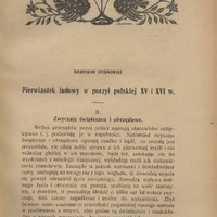 - Pierwiastek ludowy w poezyi polskiej XV i XVI wieku / Lud, 1914-1918, t. 20