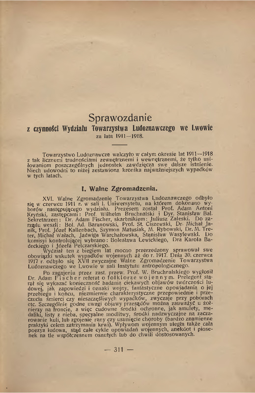 - Sprawozdanie z czynności Wydziału Towarzystwa Ludoznawczego we Lwowie za lata 1911-1918 / Lud, 1914-1918, t. 20
