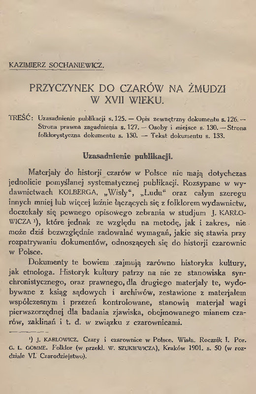 - Przyczynek do czarów na Żmudzi w XVII w. / Lud, 1922, t. 21