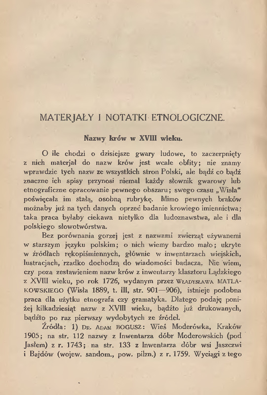 Nazwy krów w XVIII wieku /Lud, 1922, t. 21