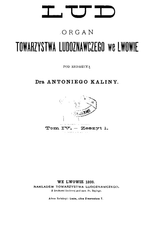TOWARZYSTWA LUDOZNAWCZEGO we LWOWIE