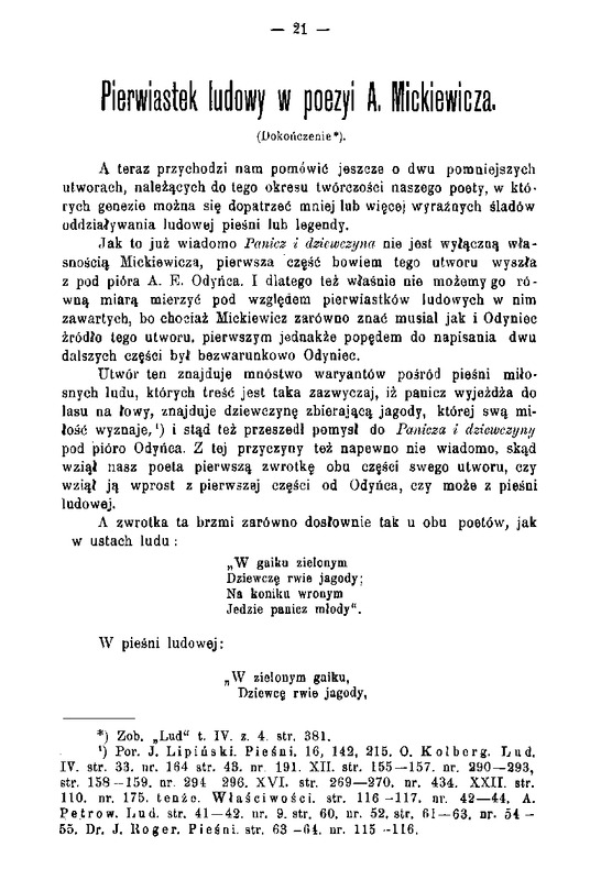 1) Por. J. Lipiński. Pieśni. 16, 14.2, 215. O. Kolberg. Lud.
