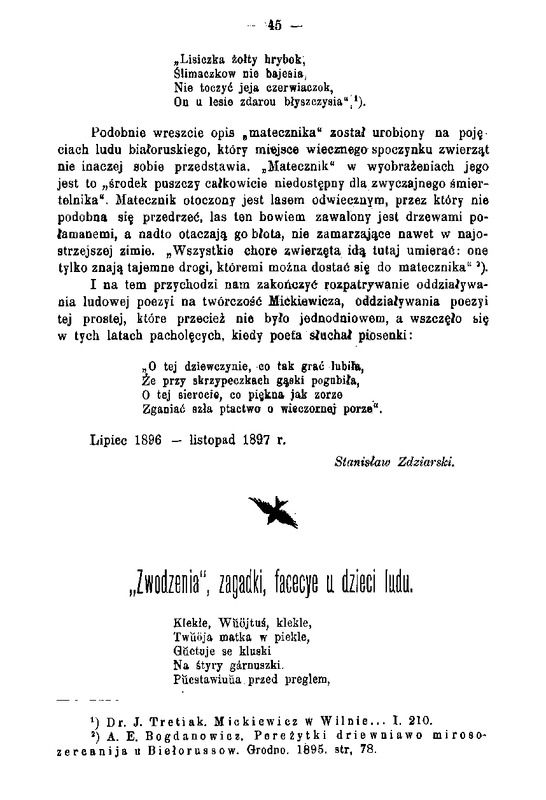 2 ) A. E. Bogdan o w i cz. Per e żyt ki dr ie w n i a w o mir os ozer ca· n i ja u Bi eł or us s o w. Grodno. 1895. str, 78.