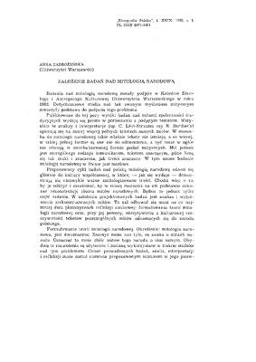 Założenie badań nad mitologią narodową / ETNOGRAFIA POLSKA 1985 t.29 z.1