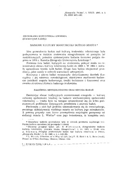 Badanie kultury robotniczej dużego miasta / ETNOGRAFIA POLSKA 1985 t.29 z.1